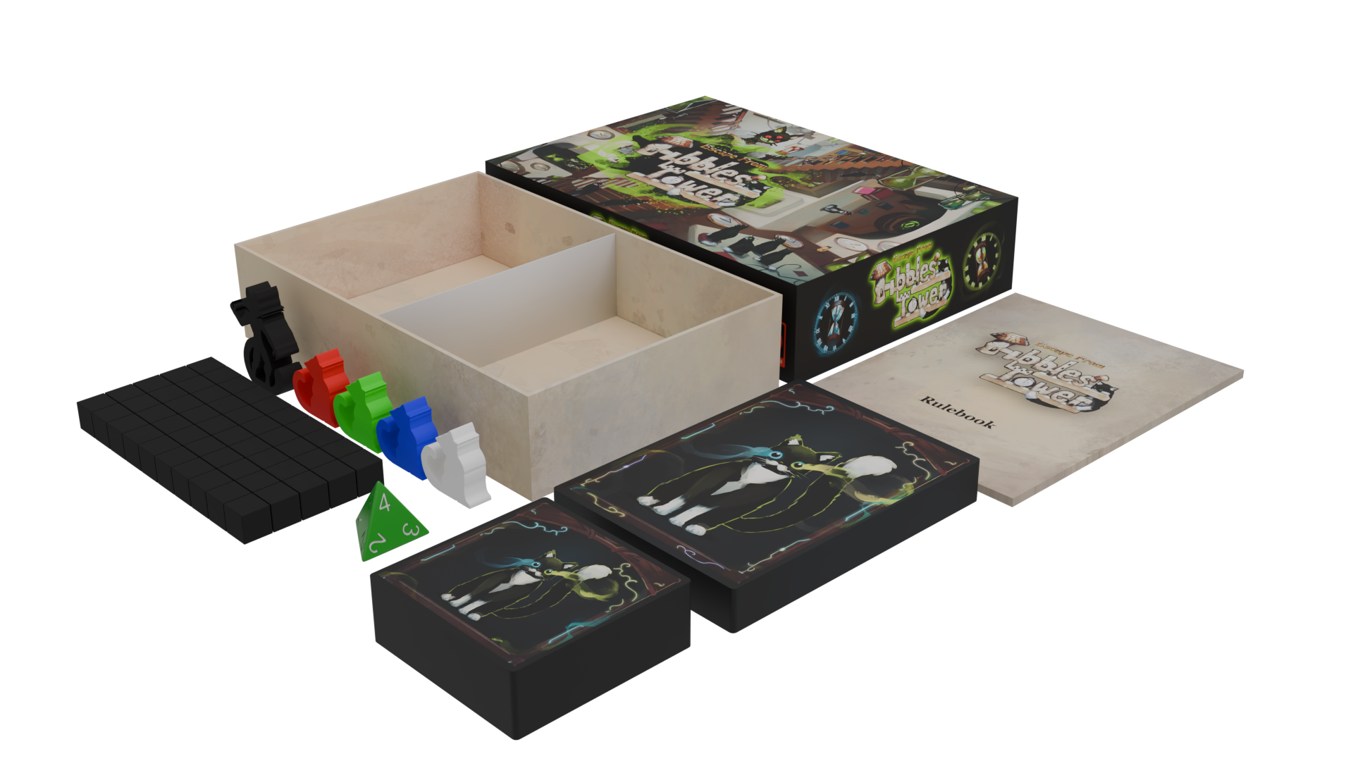Compete to be the first to make it to the exit tile and escape from Tibbles Tower!